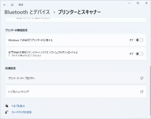 - 「プリンターとスキャナー」に戻り,「関連設定」内の「プリントサーバープロパティ」を押してください.