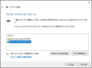 「プリンターの追加ウィザード」画面に,RICOHのプリンターの機種一覧が表示されます.その中から「RICOH IM C3500 JPN RPCS」を選択して「OK」ボタンを押してください.