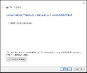 インストールが完了すると,「プリンターの追加」画面に戻ります.「
