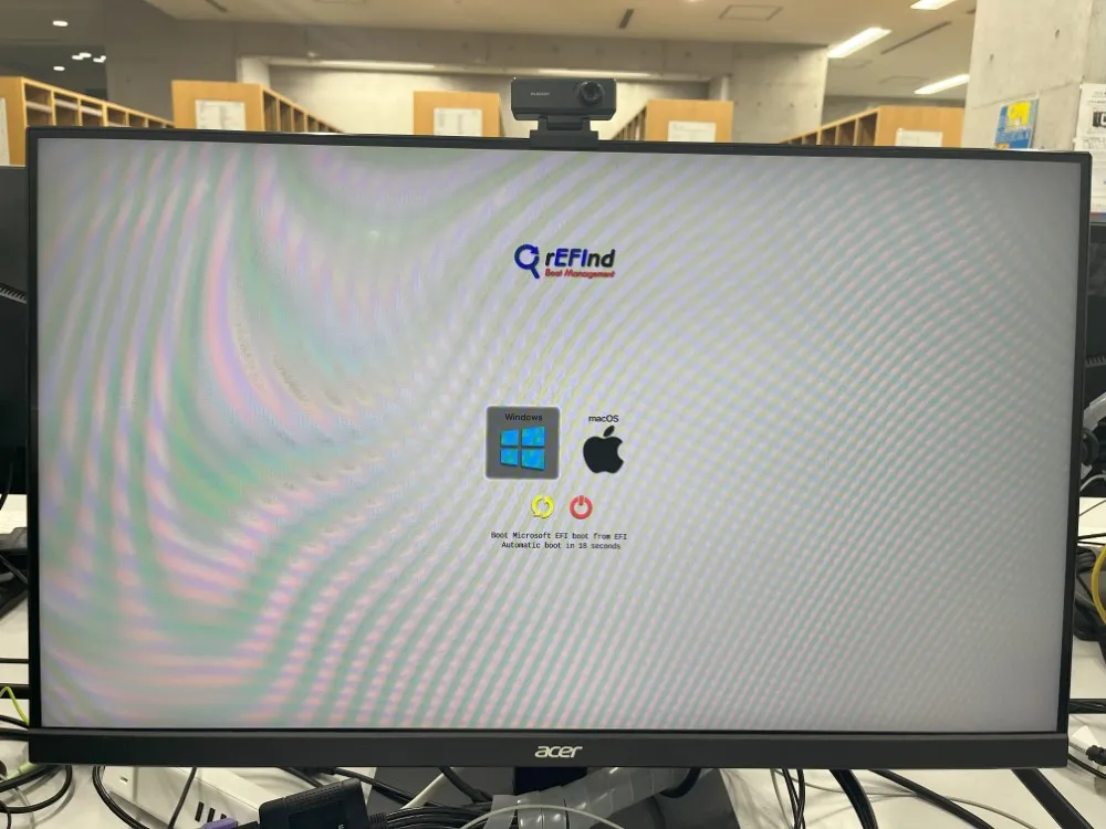 OSの選択画面が表示されたら,キーボードの矢印キーを用いてWindows環境を選択し,Enterキーを押してください.