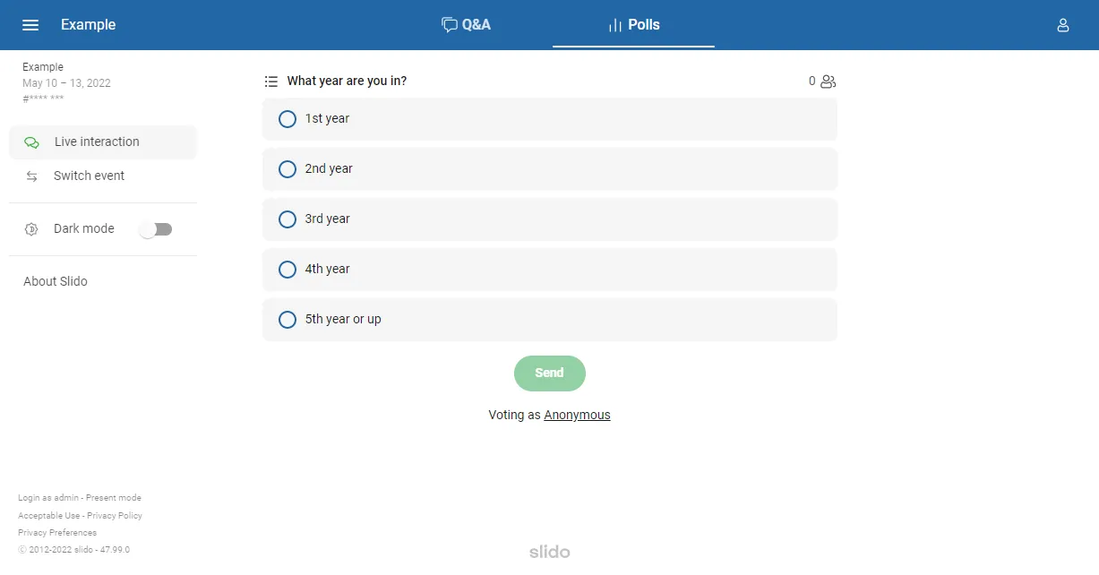 To use Slido as an event host, please refer to “What Hosts Can Do in Slido.”