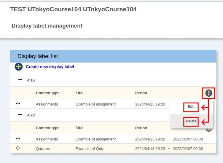1. Open Course Settings > Display label management1.
