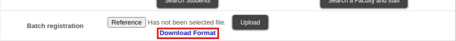 3. Download the Excel file format to register course participants by clicking the blue “Download Format” link on the “Batch registration” page.