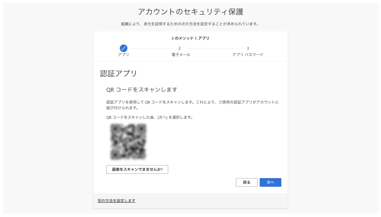 画面の中ほどにある「別の認証アプリを使用します」というリンクを探して押してください.
