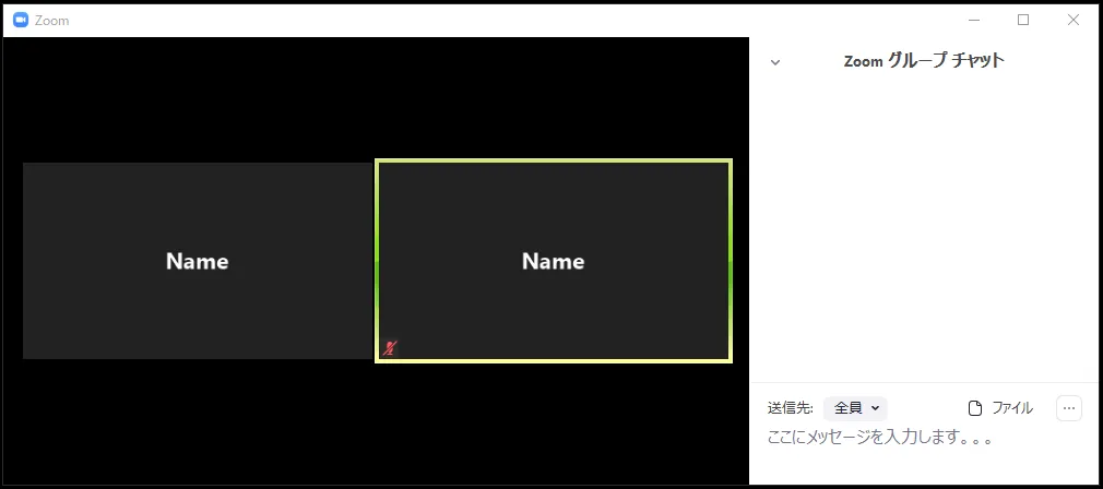メニュー「チャット」を押すと,テキストチャットができるようになります.ここで,注意が必要なのは,途中からログインすると過去のテキストチャットが確認できない点です.そのため,テキストを送付したいメンバーが全員いる状態でテキストを送付することが重要になります.